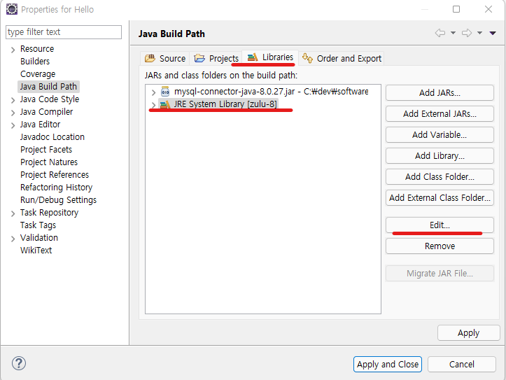 1. 프로젝트 선택 -> 마우스 우클릭 -> [Build Path] -> [Configure Build Path…]